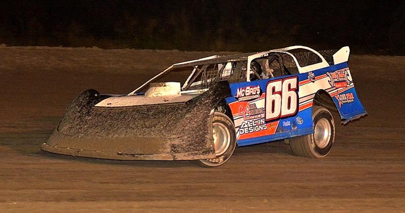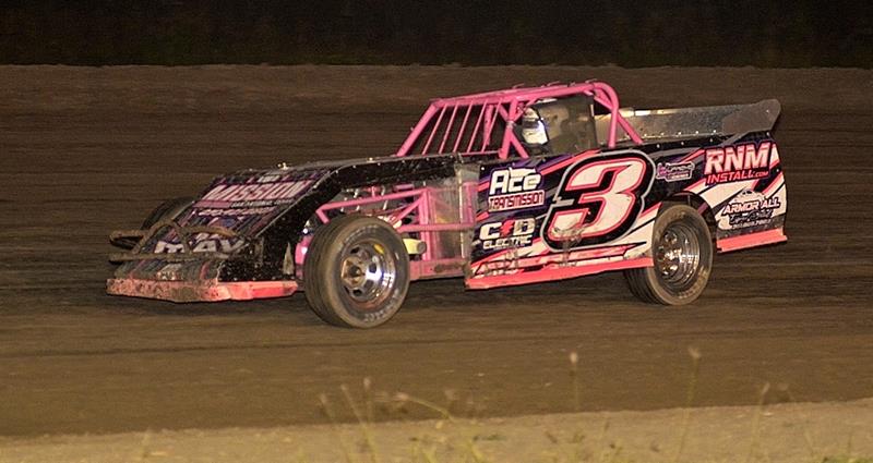 CarrollConstruction, MoBag'$ Suspension Technology & Consulting, Billy Bob's Repair & Tire, crate powered Rocket XR-1 Chassis had amassed a three-quarter straightaway advantage over Brzozowski and cruised to the checkers racing in memory of his friend, fellow Late Model racer and Sooner Late Model series champion Haydon Ross who lost his life in a four wheeler accident.