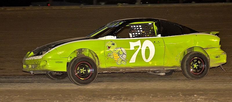 It was Gilbert Perez powering off turn 2 to grab the lead in the 15-lap Eco-Mod feature with Brianna Witzsche and JD Legg door to door for second, Brad Waddups and Cooper Koliba in tow. Legg would spin from the second place scrap for an early caution.